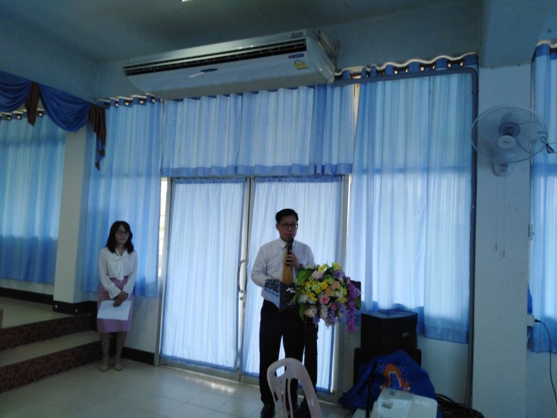 นายเกียรติศักดิ์ สุทธหลวง ผู้อำนวยการโรงเรียนกล่าวรายงาน ต่อนายยกองค์การบริหารส่วนตำบลห้วยม้า นายสิทธิชัย ชัยสุรัตน์