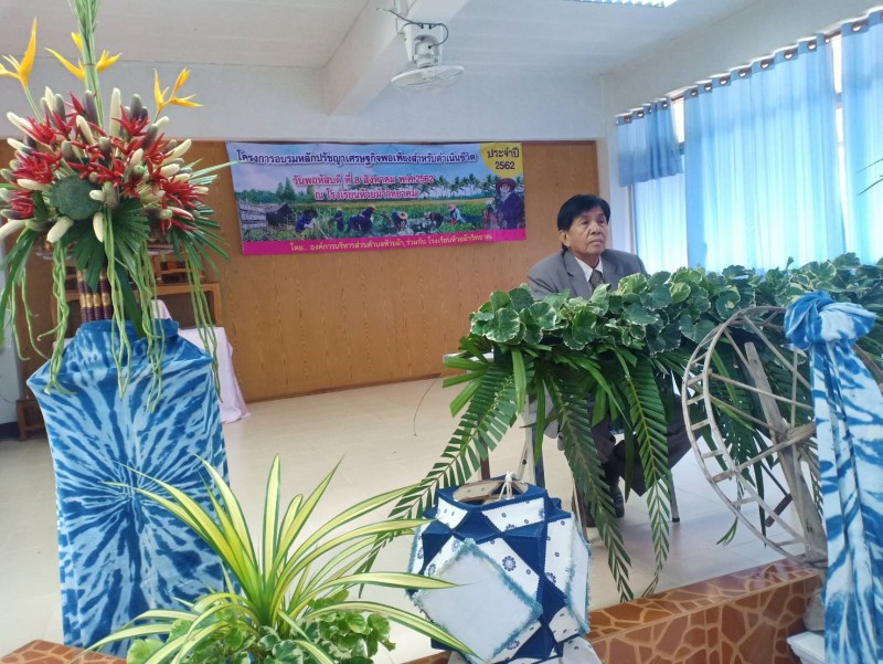 นายสิทธิชัย ชัยสุรัตน์ นายกองค์การบริหารส่วนตำบลห้วยม้า เป็นธานเปิดอบรมโครงการ |