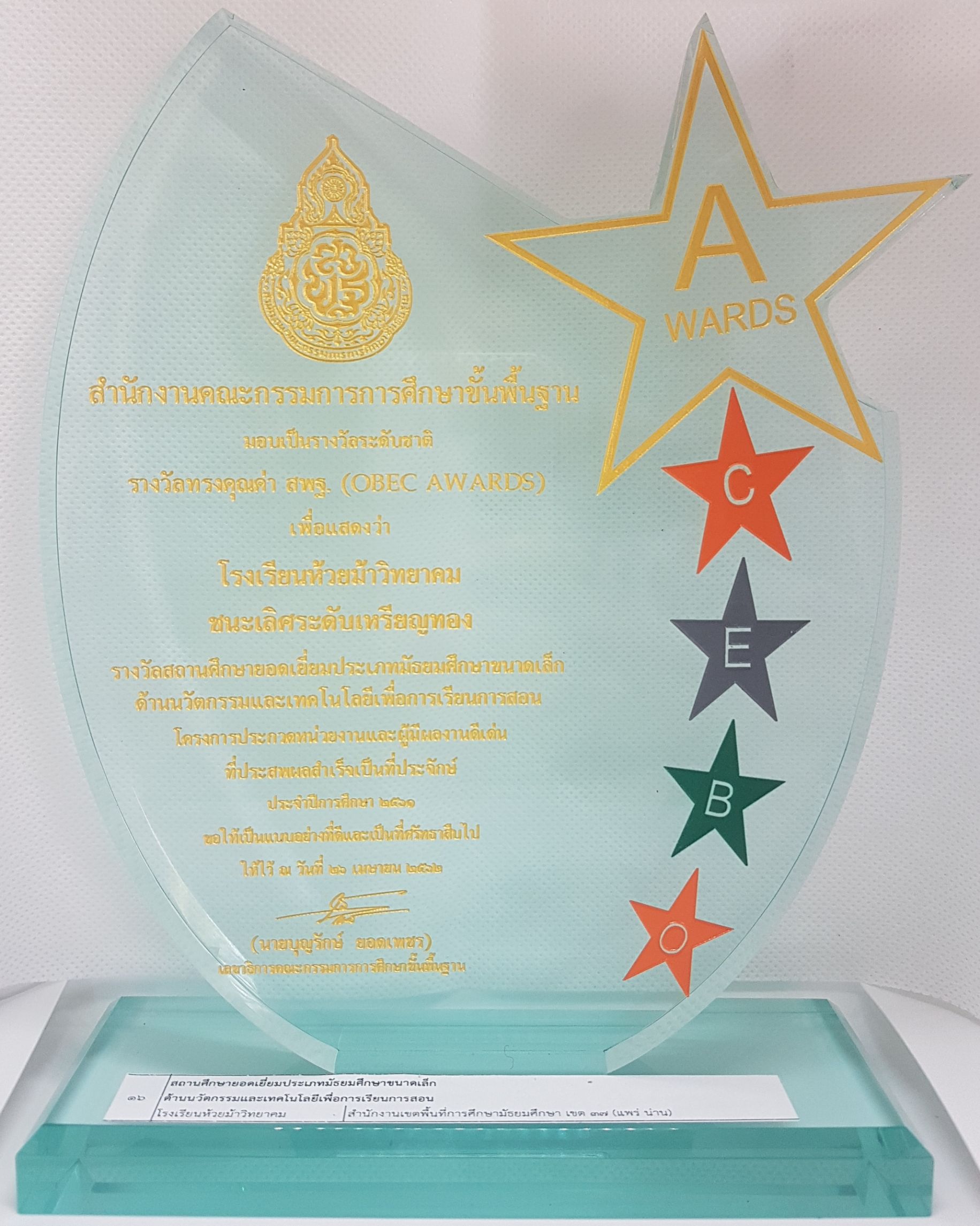 ดร.เกียรติศักดิ์ สุทธหลวง ผู้อำนวยการโรงเรียน เข้ารับโล่รางวัลและเกียรติบัตร จากนายสุเทพ ชิตยวงศ์ เลขาธิการคณะกรรมการการศึกษาขั้นพื้นฐาน วันที่ 20 – 21 มิถุนายน 2562 ณ โรงแรมอะเดรียติก พาเลช
