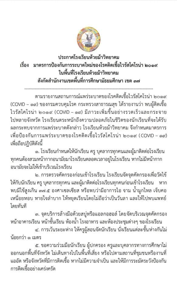 ประกาศมาตราการโรงเรียน