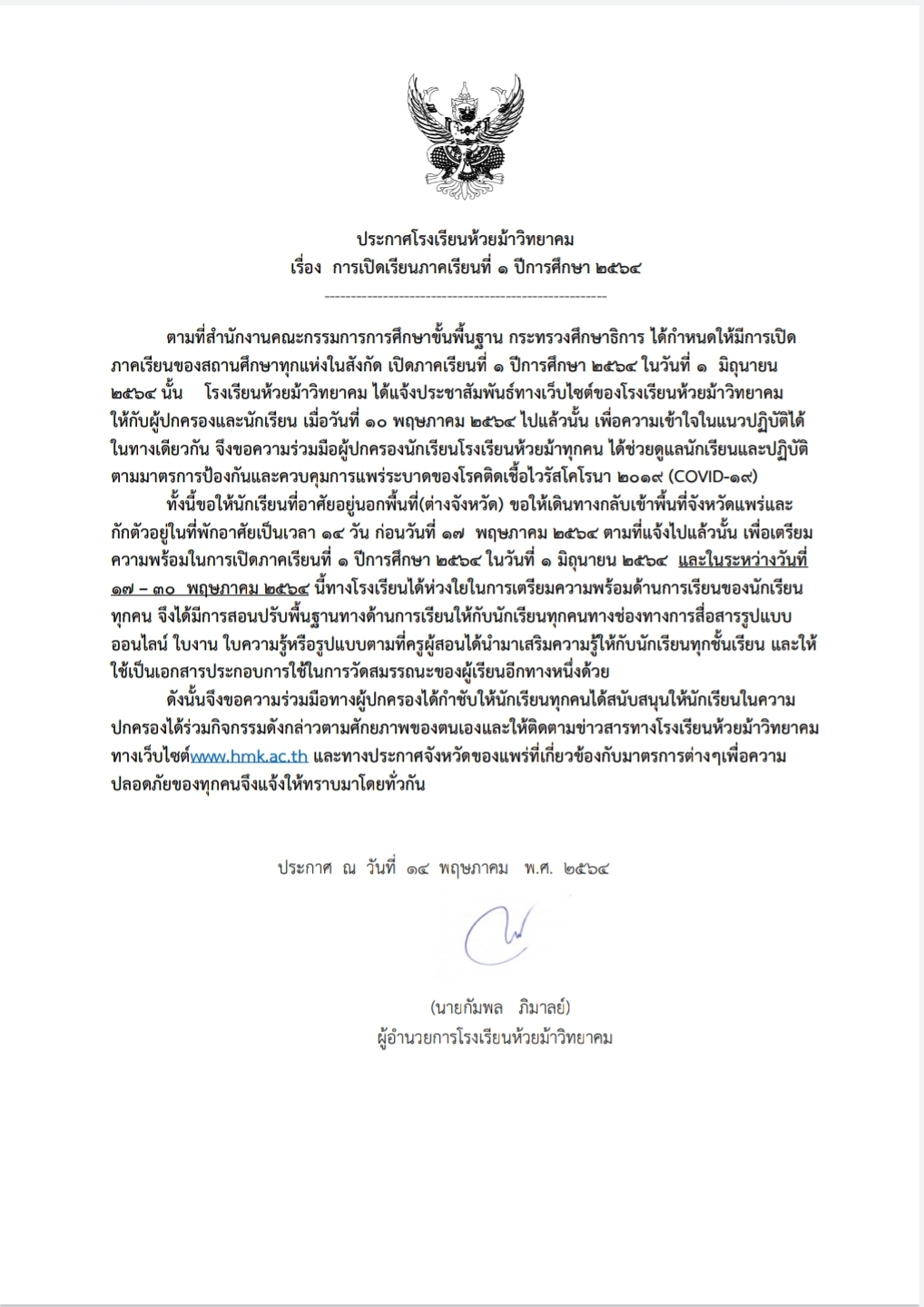 ประกาศโรงเรียนห้วยม้าวิทยาคม
