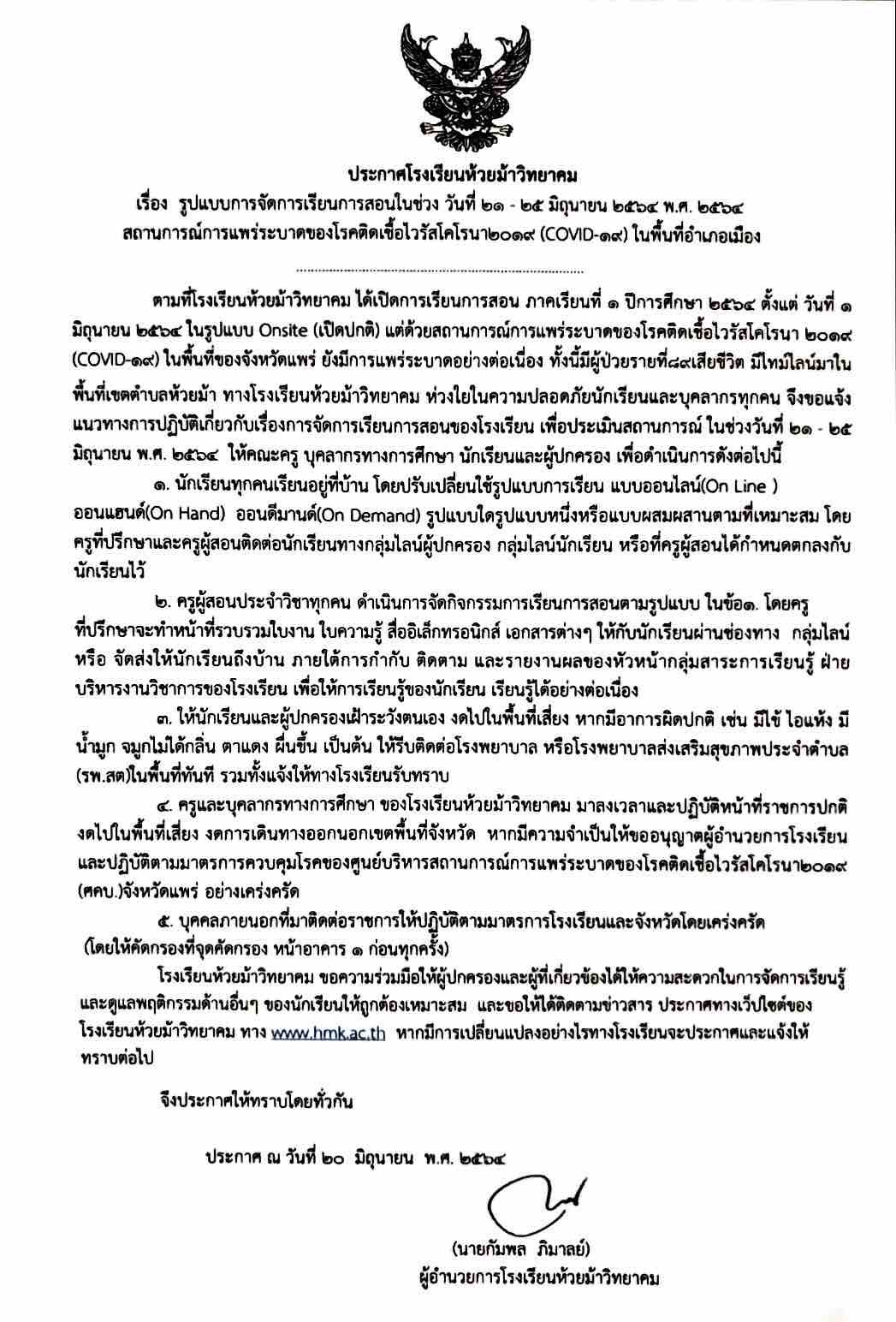 ประกาศการเรียนในช่วงวันที่ 21-25 มิ.ย.
