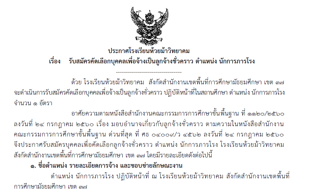 ประกาศรับสมัครลูกจ้าง ตำแหน่งนักการ