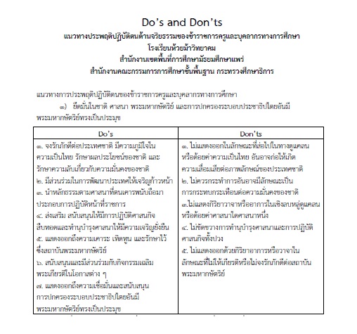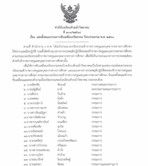 O18 : มาตรการส่งเสริมคุณธรรมและความโปร่งใสภายในสถานศึกษา